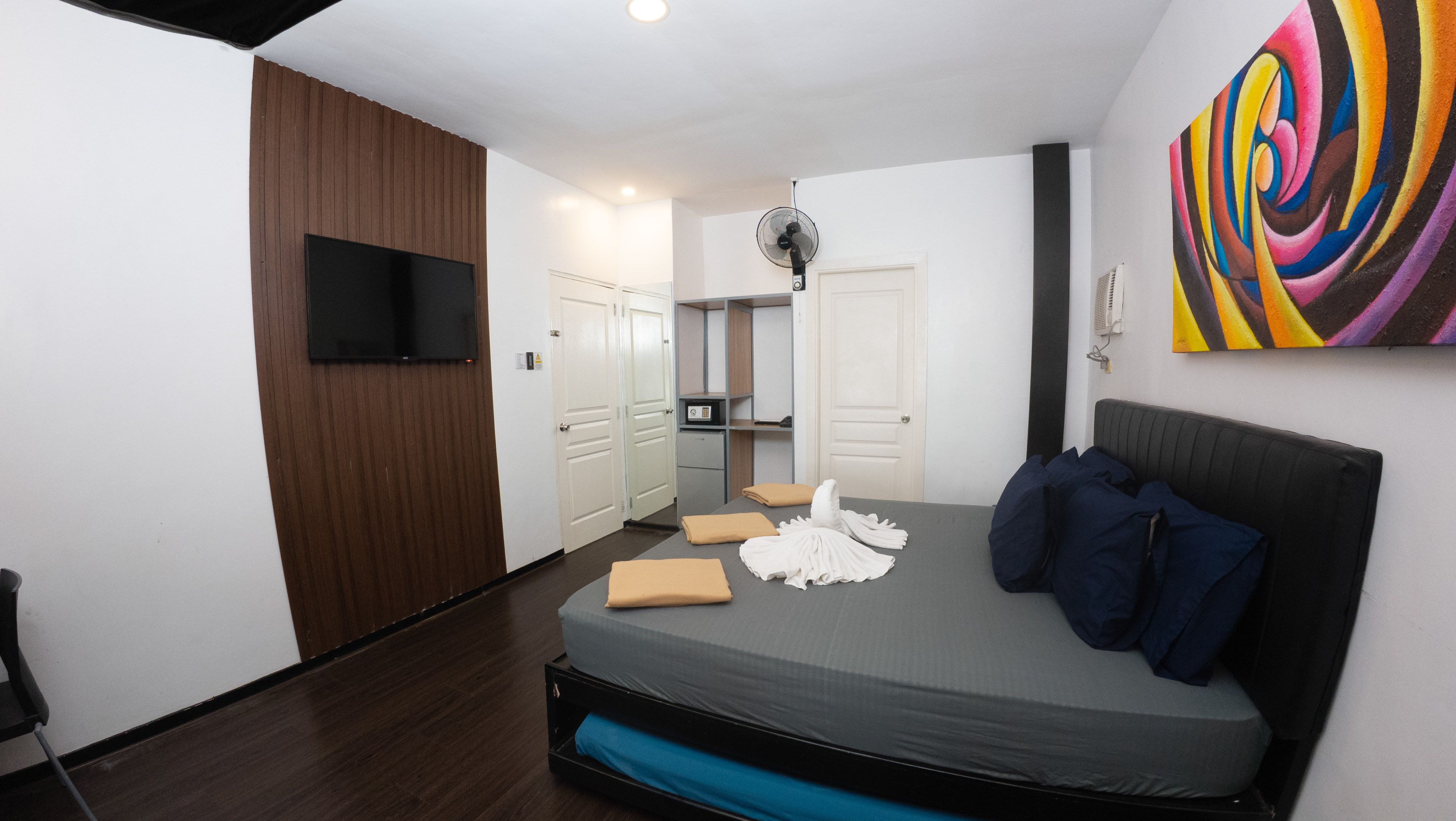 The Suite with a kitchen is a spacious option for families who love home cooked meals. The suite is furnished with a Kitchen Dining Area, TV, Heater, A/C, Refrigerator, 1 King sized bed w/ pull out, 2 Daybed w/ pullout